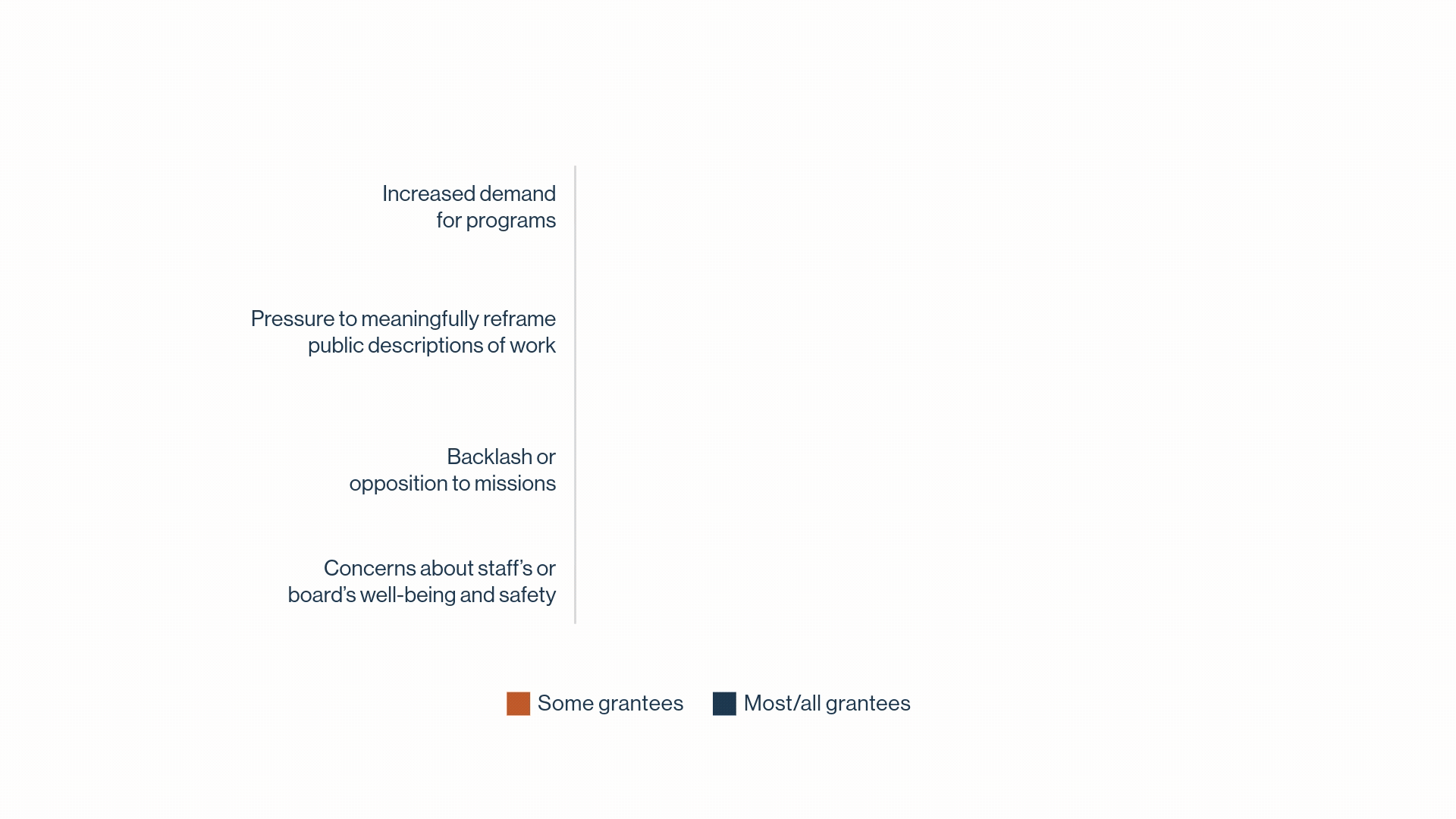 Nonprofits and philanthropies in the United States are facing historic challenges. As nonprofits experience a surge in demand, foundations are trying to help by providing grants, resources, and a platform for grantees. Nonprofits are engaging in creative collaboration and using strategies such as litigation to build and exercise collective power to protect both the sector and the people and communities they seek to serve. Even so, this research from fall 2025 shows that most nonprofit leaders say the "current context" — the series of events led by the U.S. federal government’s actions beginning in early 2025, including budget decisions, legislation, and executive orders — is hurting their organizations, and they need more support from their foundation funders. Given this, the Center for Effective Philanthropy sought to learn more about what nonprofits and foundations are experiencing and how they are responding to the current context.