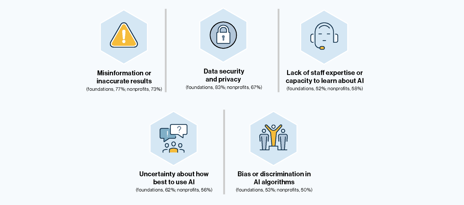 The rapid spread of artificial intelligence (AI) is transforming the way we work. Business adoption of AI has surged from 55 percent in 2023 to nearly 80 percent in 2025 — and the nonprofit sector is seeing a similar increase in usage. With the fast pace of relatively unregulated AI innovation and growth, the Center for Effective Philanthropy (CEP) aimed to understand foundations’ and nonprofits’ understandings of, attitudes toward, and engagement with AI — and what role equity plays in these decisions. To our knowledge, this research is the most representative study comparing AI use and views in philanthropy and nonprofits to date.