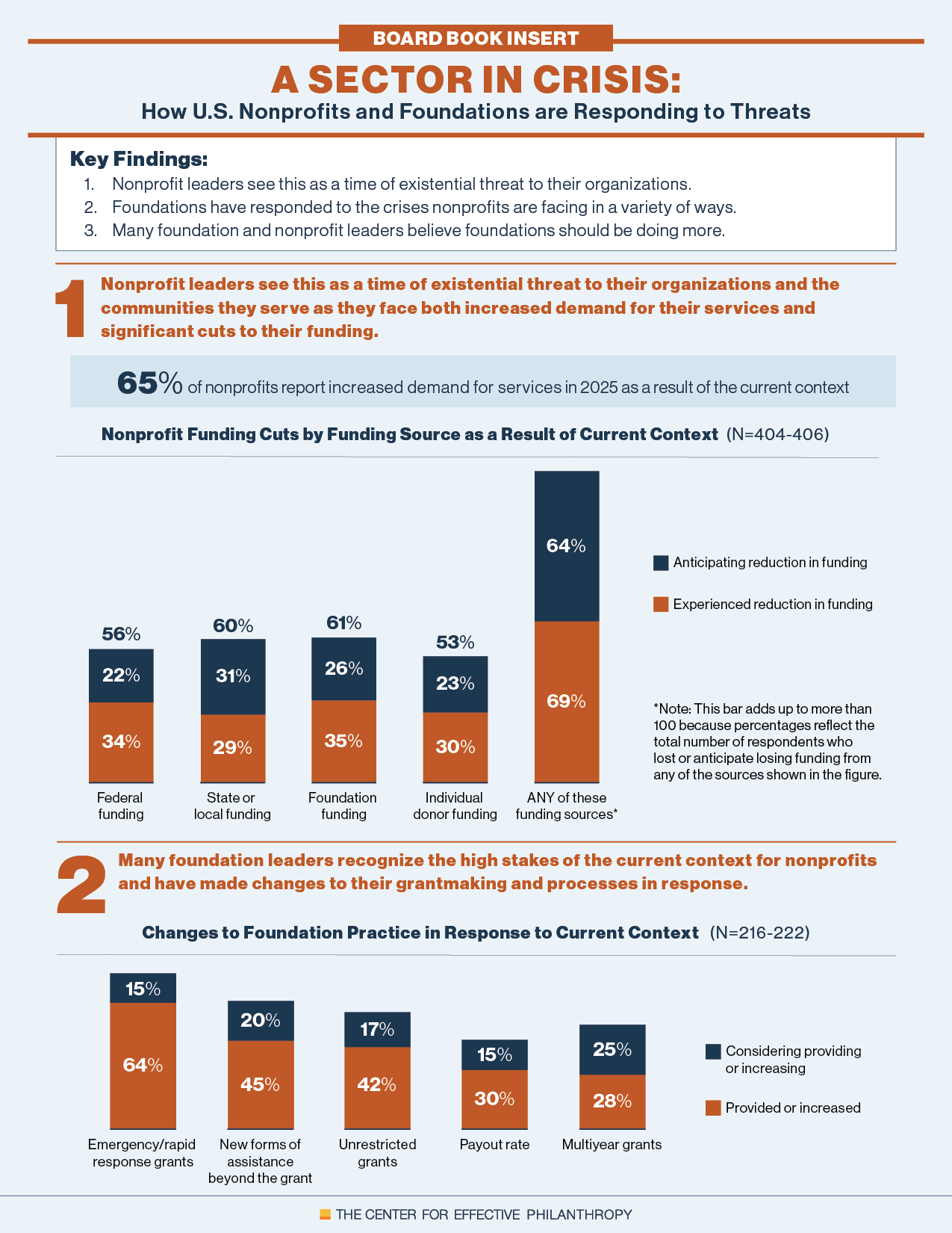 Based on nationally representative survey data from more than 400 nonprofit leaders and more than 200 foundations, this new report expands on findings first presented at CEP’s conference in late 2025, revealing a nonprofit sector in crisis. The data offer insight into not only how nonprofits are faring, but how foundations are responding and what more leaders would like to see from funders.